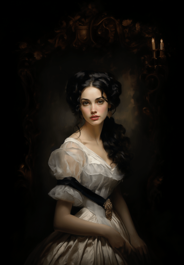Then one crisp morning, something in that murky window hit him like a gut punch. A portrait of a woman from another century, draped in velvet that screamed old money. Her hair? Pitch black, swallowing shadows, and her skin so ghostly pale it shimmered like frost on a windowpane. The painter must’ve poured their soul into it; every wrinkle in the fabric, the sharp angle of her cheekbone, flawless. But those eyes… damn, they drilled into you. Deep pools of ink, almost pleading, drawing you closer as if she had secrets buried just for you. Charles stood there, frozen, feeling an invisible tug.
